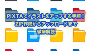 PIXTAでイラスト(ベクター素材)を販売したい初心者必見!EPSとPNGをまとめたZIPファイルの作り方から、アップロード、審査申請のコツまで画像付きで詳しく解説します。